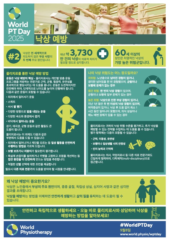 이번 세계 물리치료사의 날을 맞아, 스스로의 사명과 가치를 되새기며 자부심을 느끼는 뜻깊은 하루가 되시길 바랍니다.