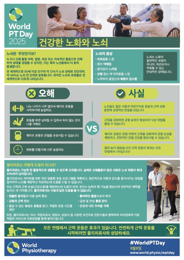 다가오는 9월 8일은 세계 물리치료사의 날(World Physical Therapy Day) 입니다.