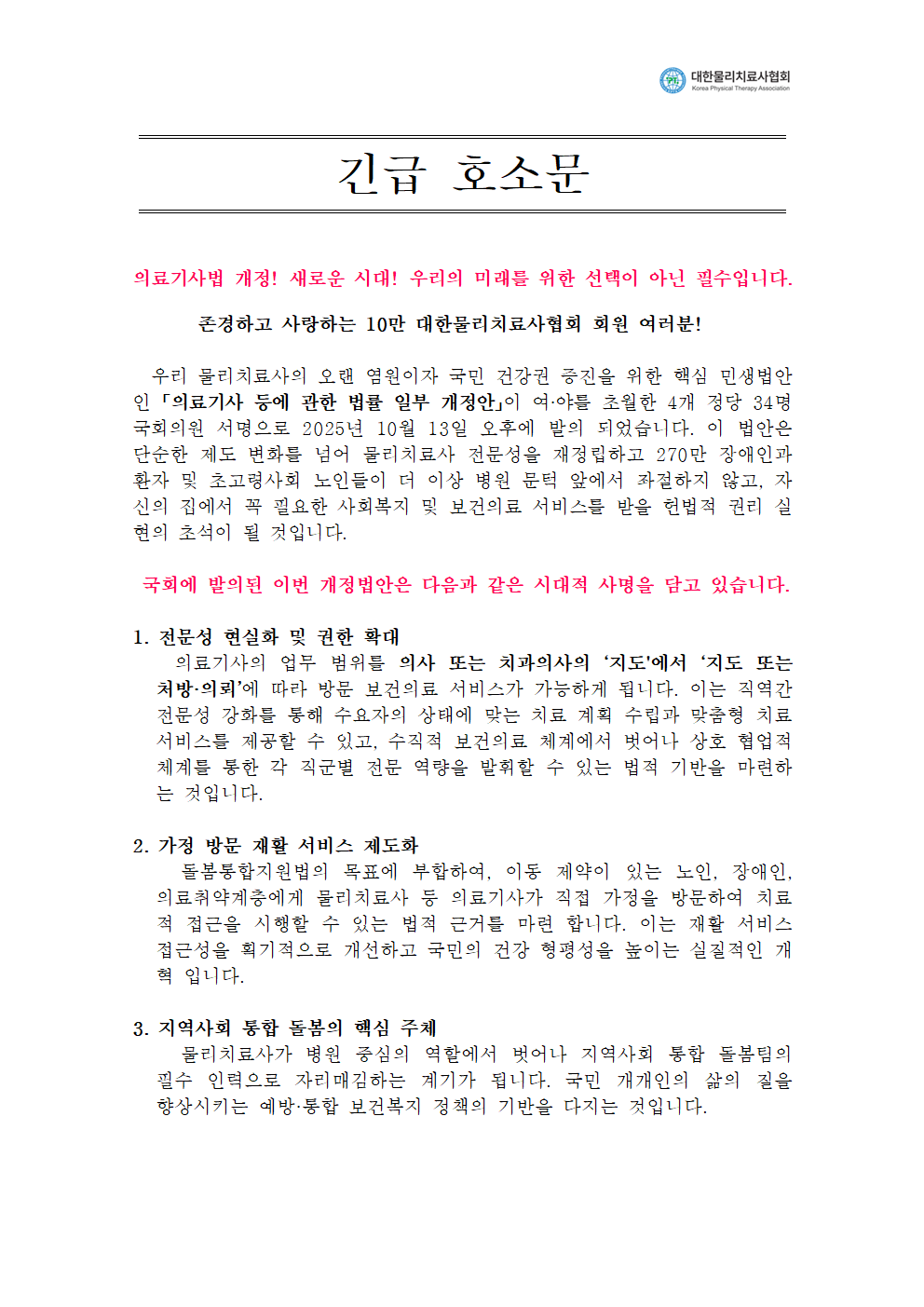 #물리치료사협회 #물리치료협회 #PT #대구PT #호소문 #긴급호소문