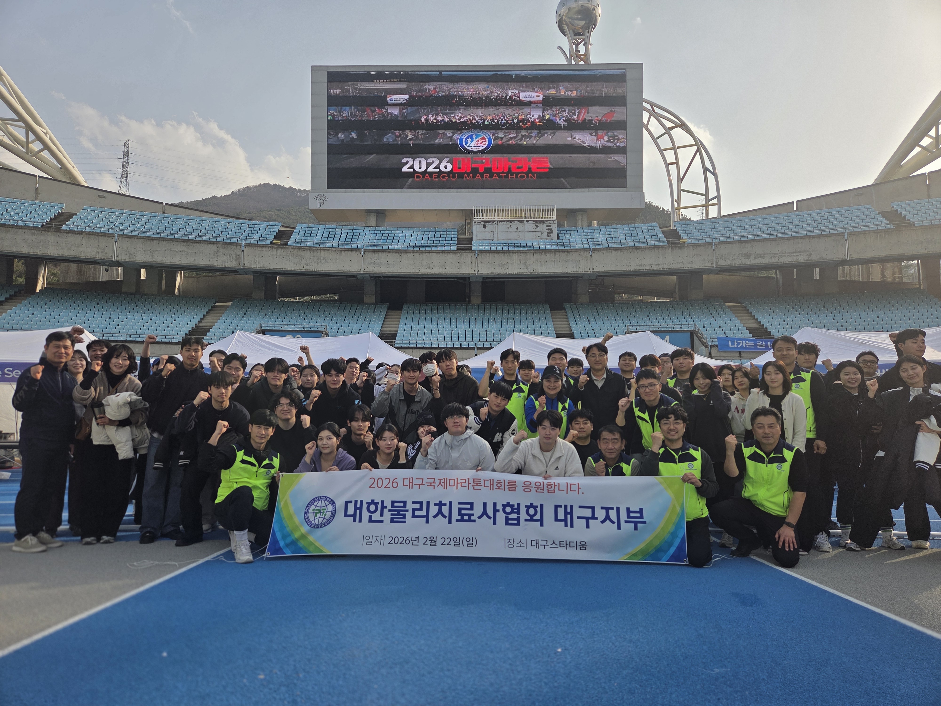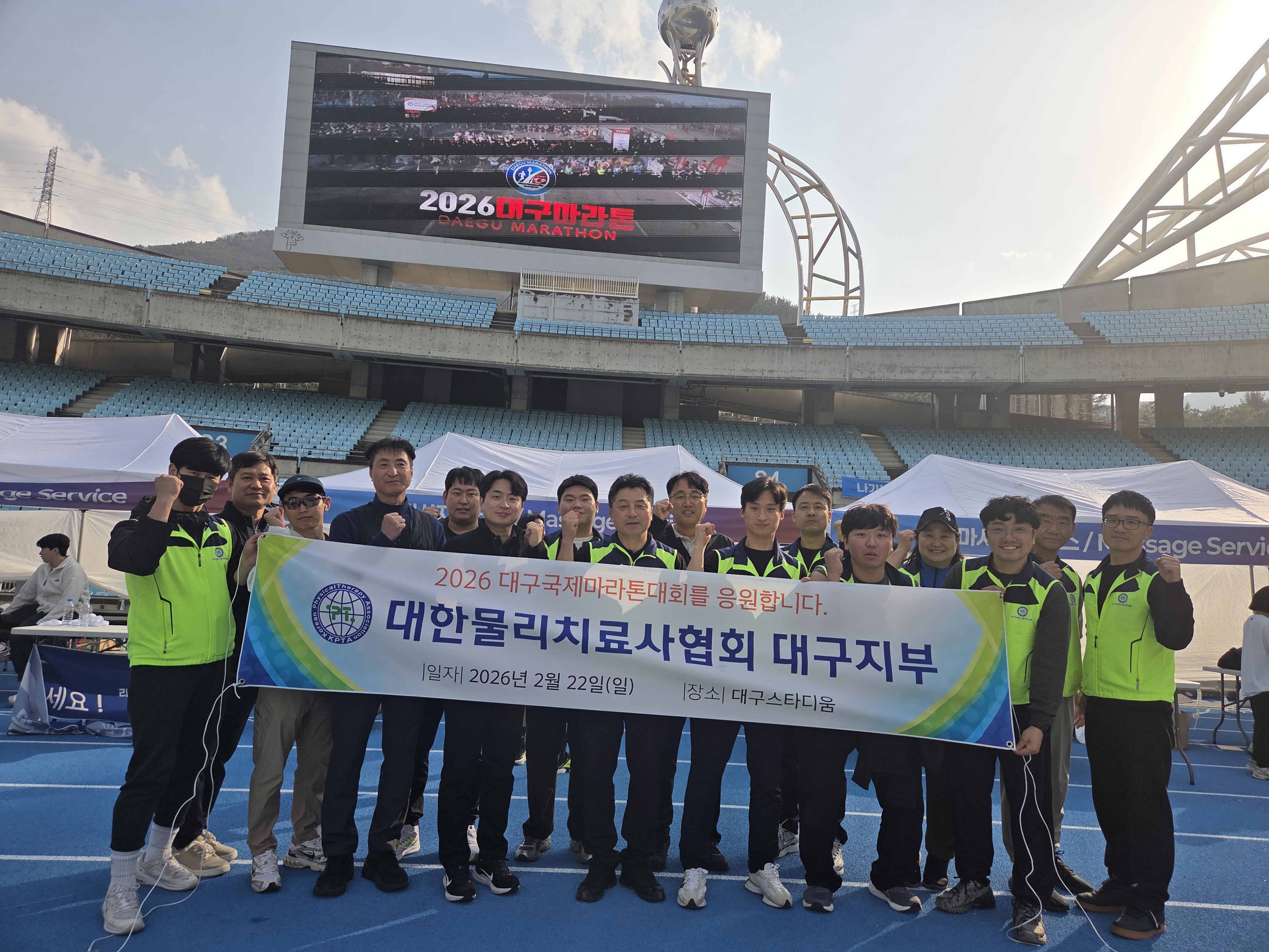 지난 2월 22일(일), 대구스타디움에서 열린 2026 대구 국제 마라톤대회 현장에서 물리치료 자원봉사를 진행했습니다