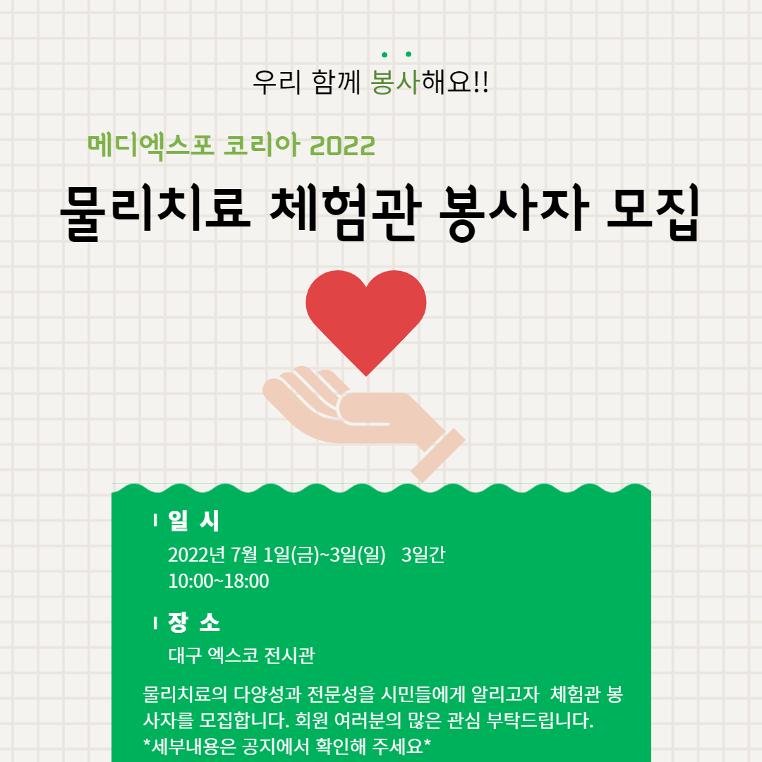 [대한물리치료사협회 대구광역시회]물리치료 체험관 봉사자 모집
