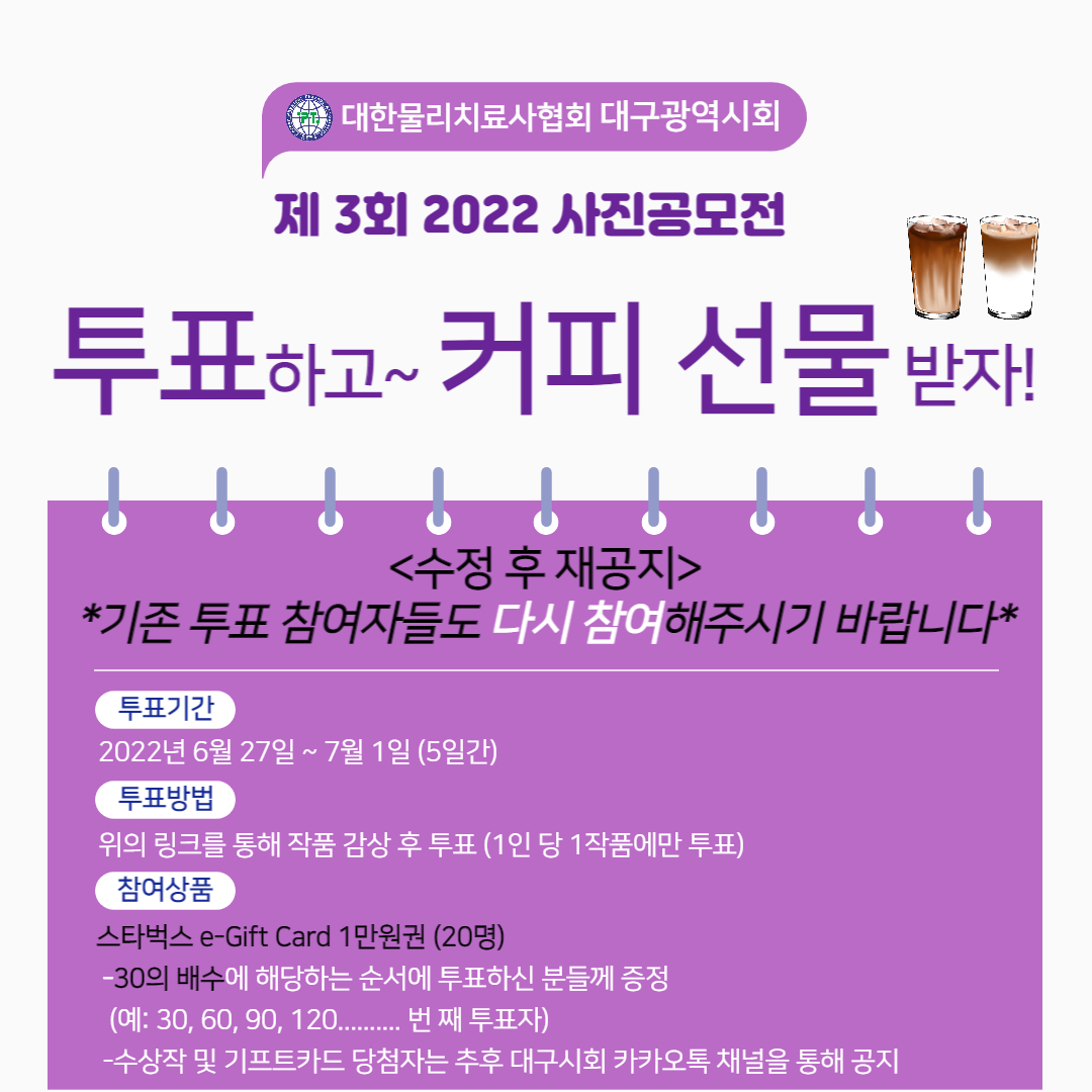 *수상작 및 기프트카드 당첨자는 추후 대구시 물리치료사협회 카카오채널 통해 공지